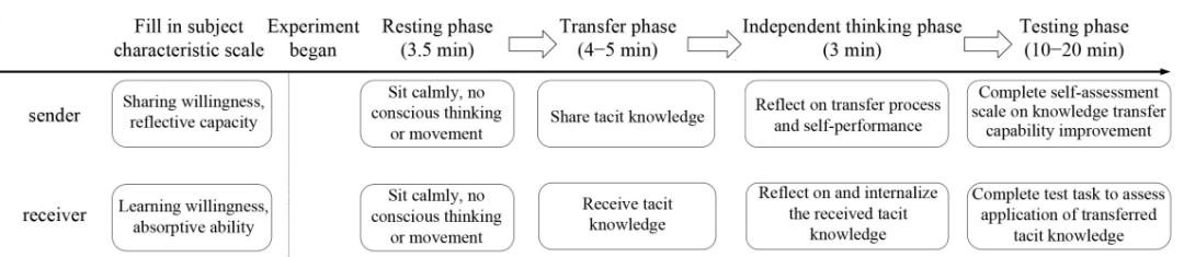 隐性知识转移期(4~5分钟):接收者与发送者面对面传递技术/认知型隐性知识