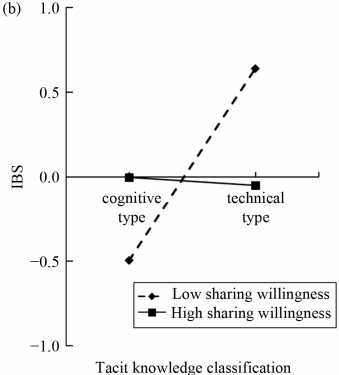 H6.发送者的隐性知识分享意愿调节隐性知识类型与IBS水平的关系。