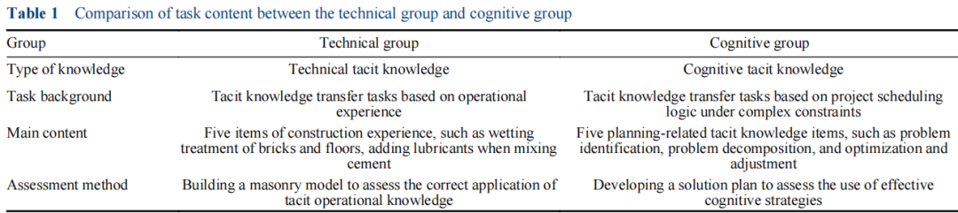 精准将建筑工程隐性知识划分为技术型与认知型,系统对比两类知识转移的IBS水平和转移绩效差异;