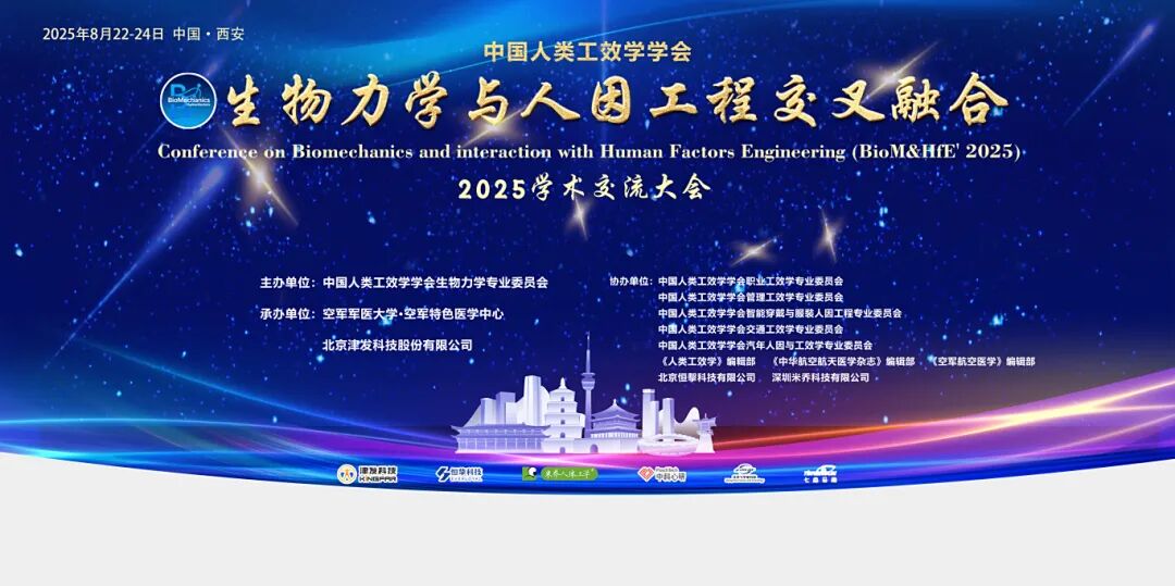 2025年8月22日-24日,中国人类工效学学会生物力学与人因工程交叉融合2025学术交流大会在西安召开。会议由中国人类工效学学会生物力学专业委员会主办,空军军医大学·空军特色医学中心承办,中国人类工效学学会职业工效学专业委员会、中国人类工效学学会管理工效学专业委员会、中国人类工效学学会智能穿戴与服装人因工程专业委员会、中国人类工效学学会交通工效学专业委员会、中国人类工效学学会汽车人因与工效学专业委员会、《人类工效学》编辑部、《中华航空航天医学杂志》编辑部、《空军航空医学》编辑部、北京恒挚科技有限公司及深圳米乔科技有限公司协办。来自全国高校、科研院所及企业界的代表近200人参加会议。