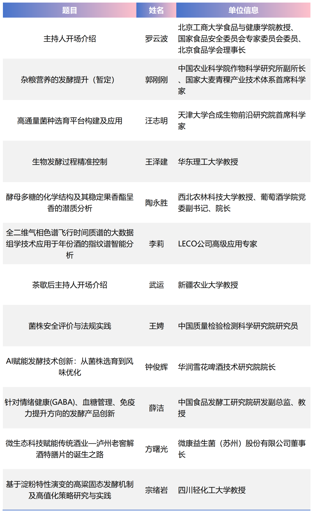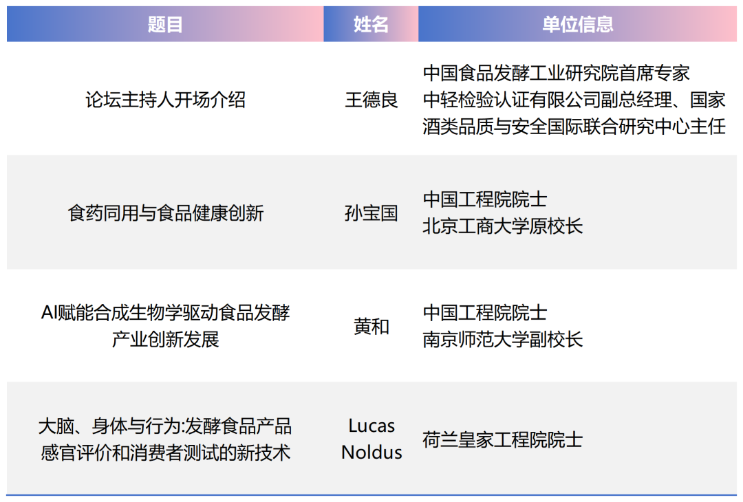 邀请院士和权威专家发表主旨演讲,围绕大会主题,分享最新发展动态、趋势以及面临的机遇与挑战等。探讨食品消费趋势、AI与智能化技术在发酵产业中的应用,以及生物制造创新技术的潜力等。