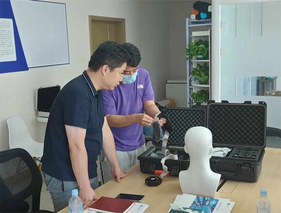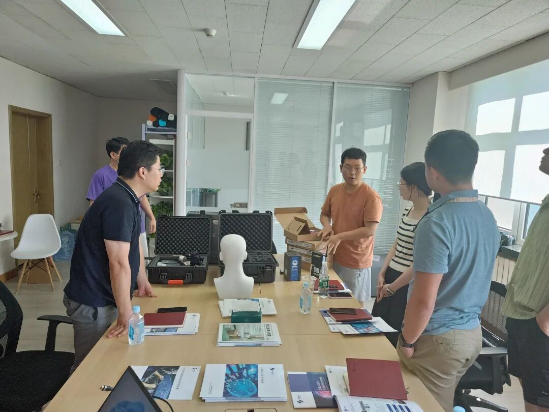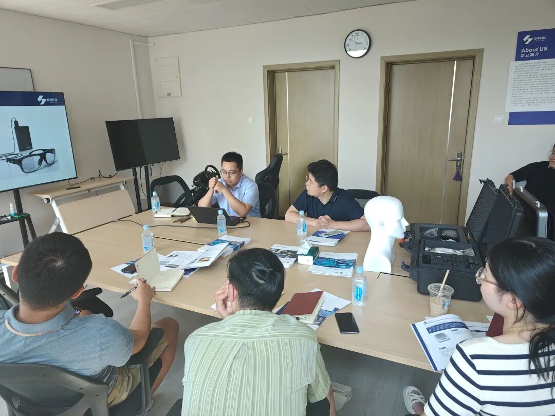 靳璨技术工程师会后向方逸海教授一行解释了生理多导仪的各模块之间的连接特性与使用时的注意事项,特别强调如果想用生理数据进行论述可能需要多种模块采集到的数据进行联合解释,尽量避免出现仅用单一模块的生理数据解释一切原因的情况。