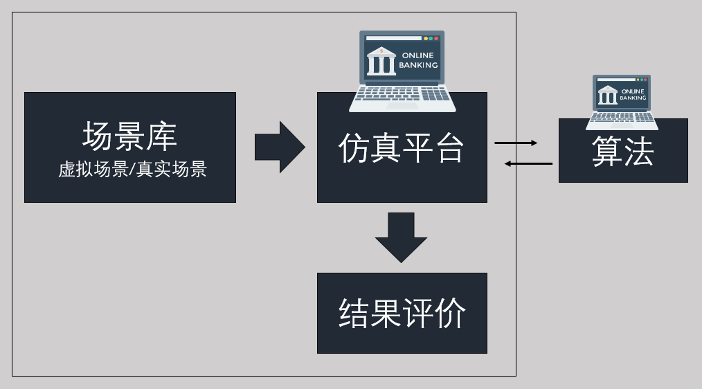 自动驾驶仿真有三个要素:场景库、仿真平台、以及结果评价。关于场景库,仿真平台是一系列软件的集合,搭建起一个框架,形成一个仿真平台,在仿真平台中,用海量的场景(场景库)对自动驾驶的各个算法进行功能验证(大概逻辑如下所示)。